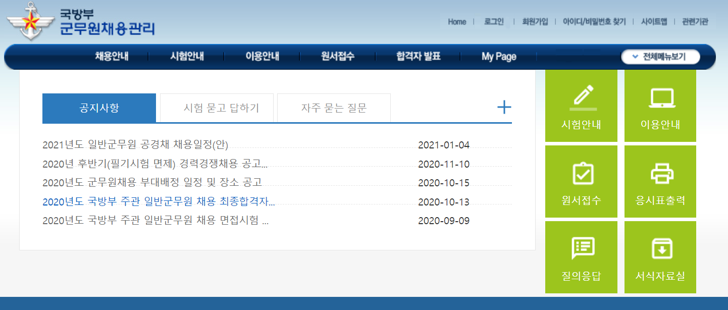 국방부는 채용관리 페이지를 통해 2021년 일반 군무원 공경채 채용일정을 발표했습니다.